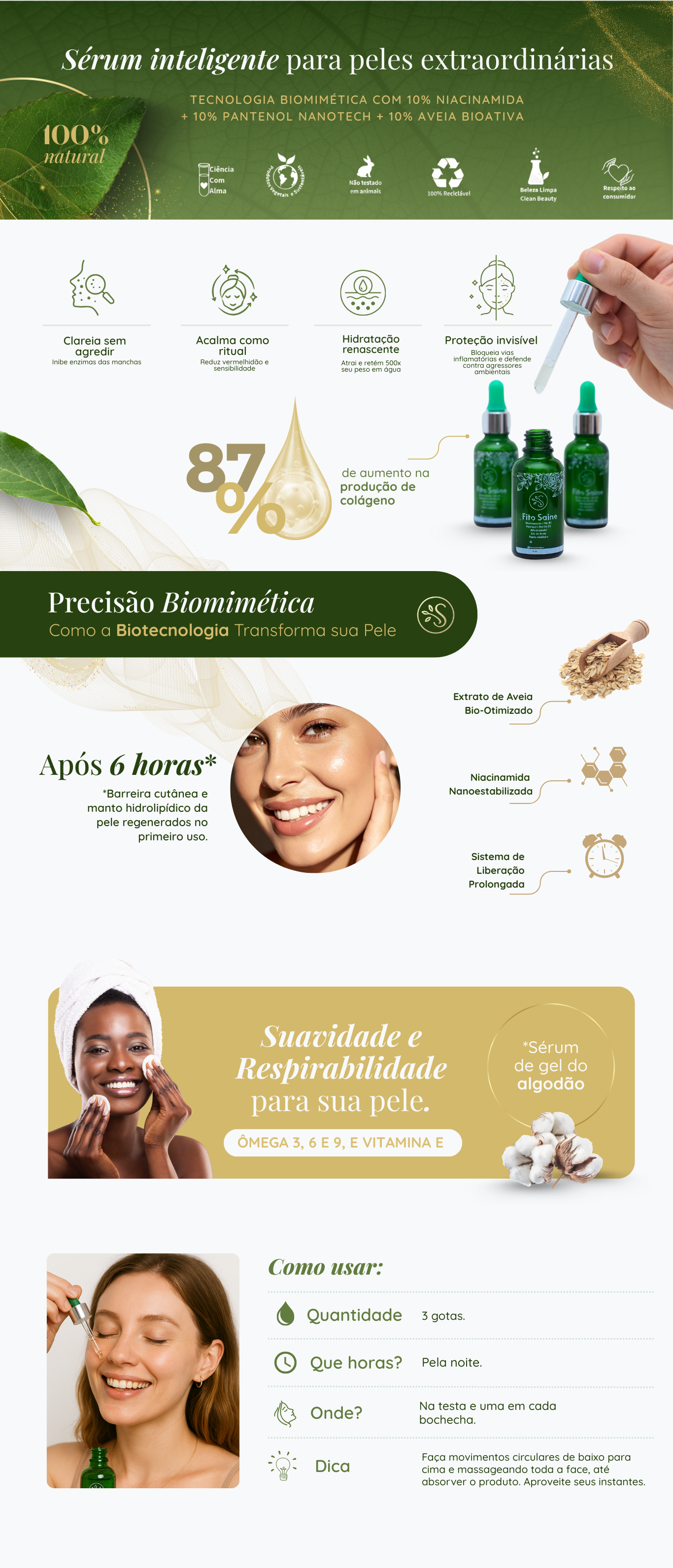 Para você que cansou de promessas vazias. Para quem busca uniformizar manchas, acalmar irritações e hidratar profundamente sem agredir.